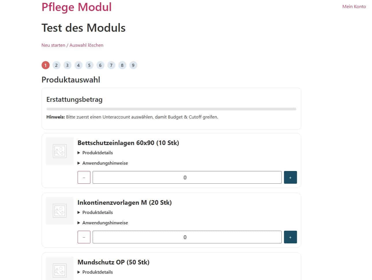 50% Anzahlung für die Entwicklung des Moduls Pflegebox